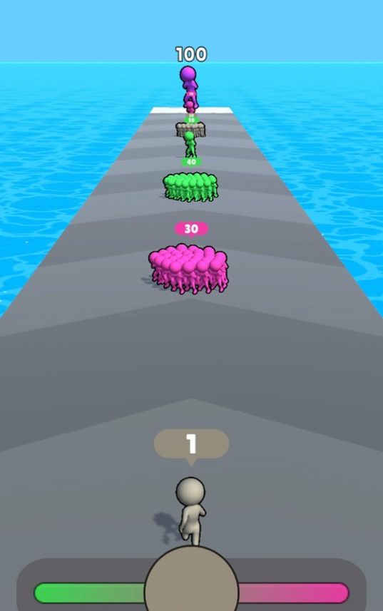 1、用相同的颜色增加人群数量,到达终点把BOSS击飞才能获胜。