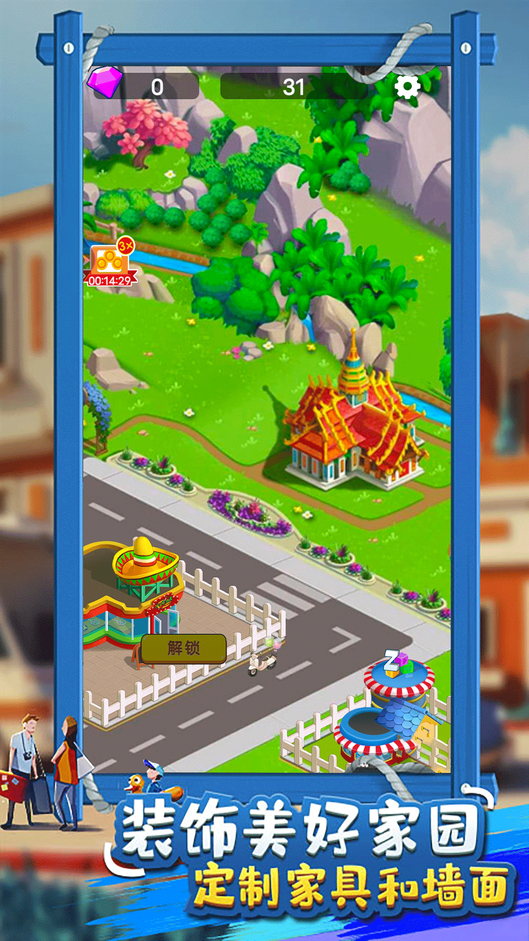 2、随着小镇的不断发展,你可以解锁更多高级建筑物,获得更多的金币和利润;