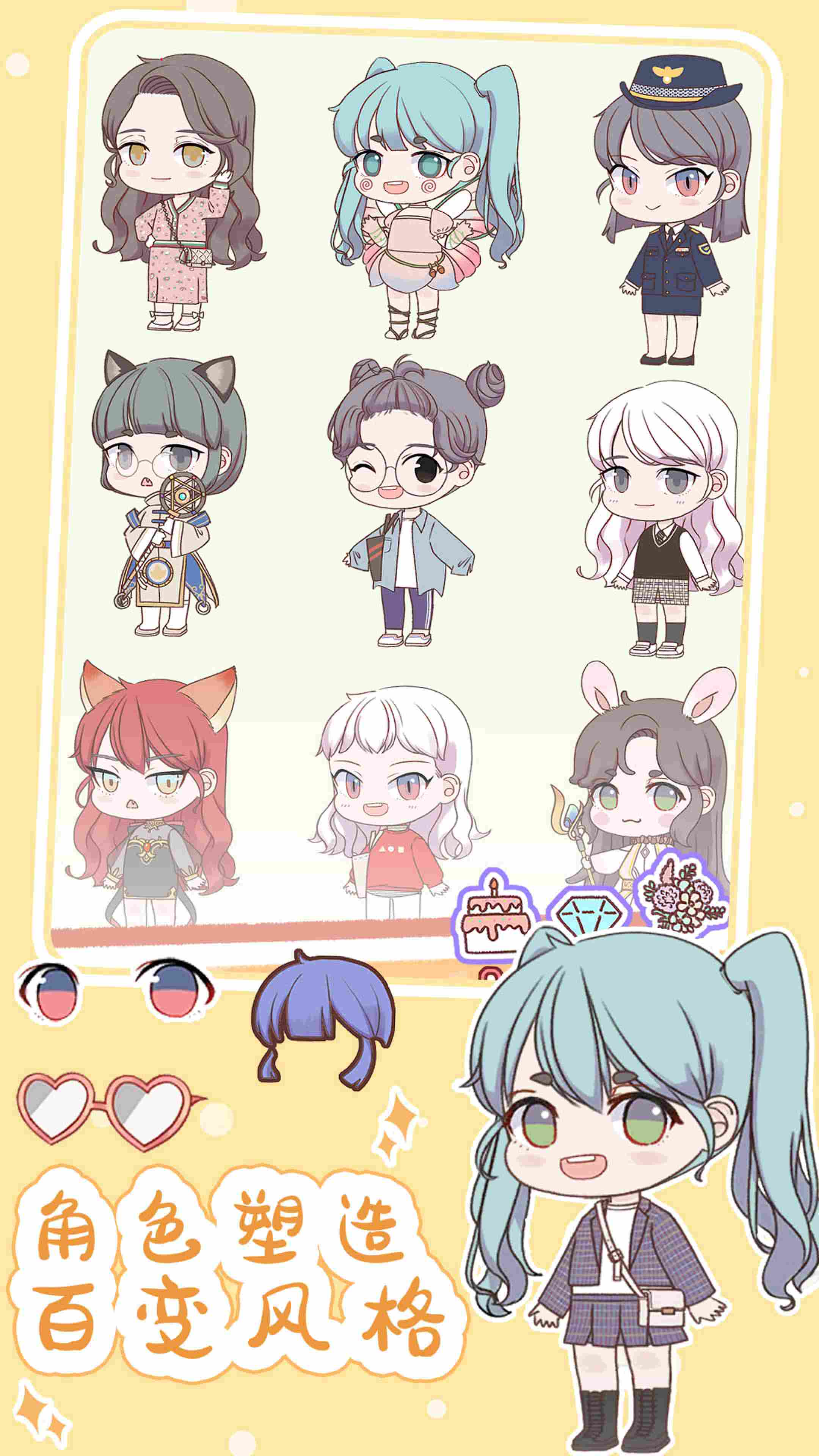 3、个性化头像贴,玩转自己的风格!有了可爱的娃娃,表达自己从未如此简单!制作卡通风格的角色!