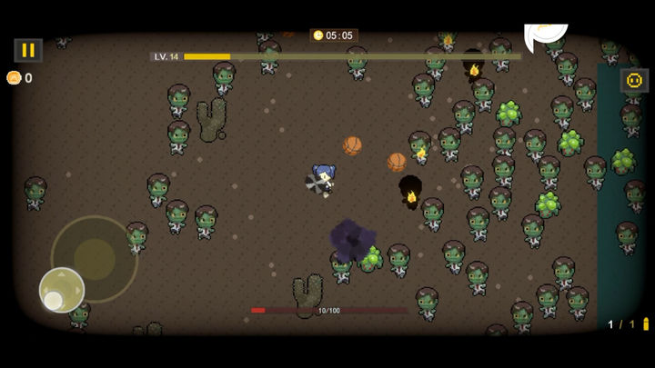 2、使用虚拟摇杆来进行操作,控制角色的走位与射击。