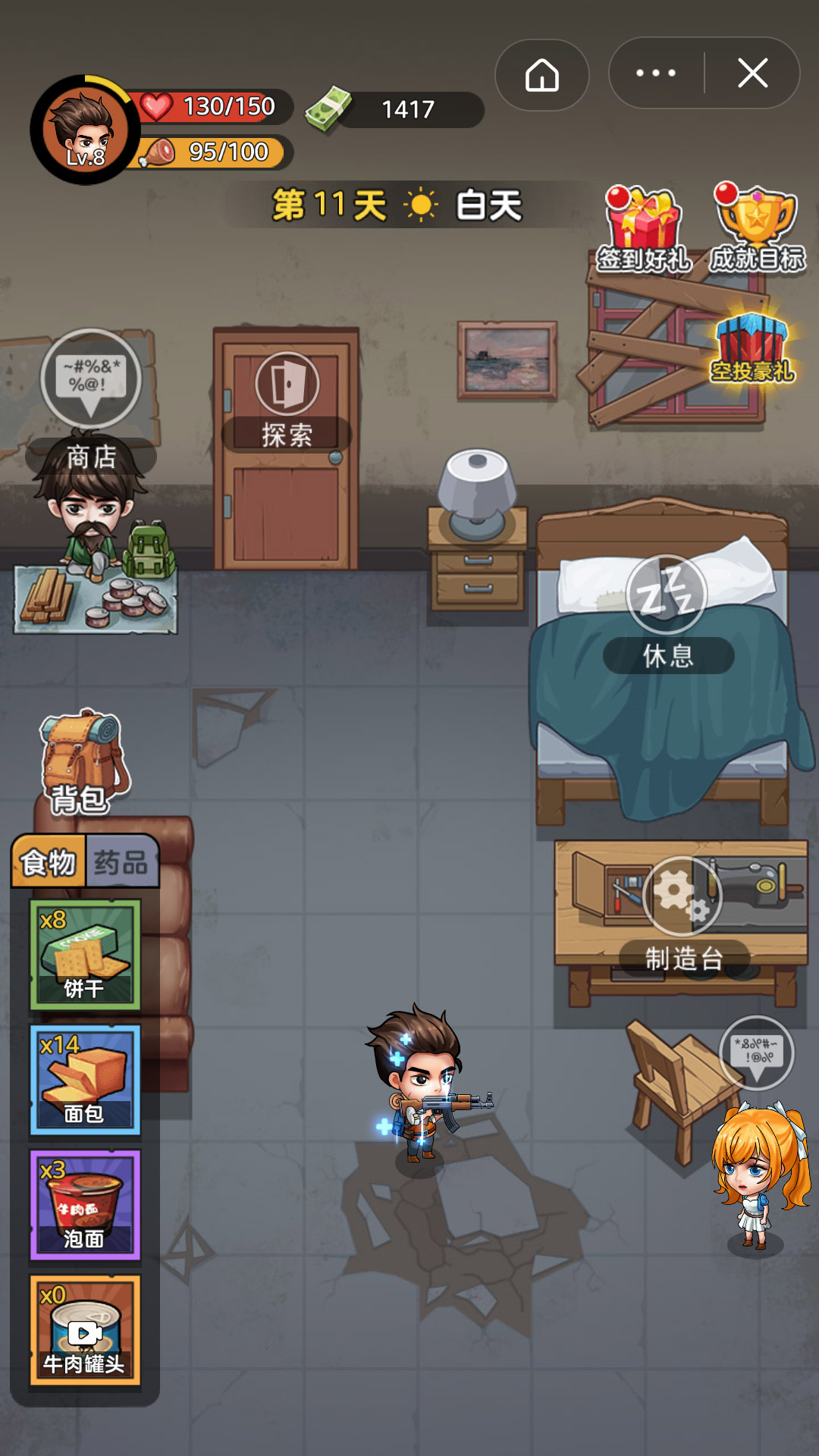 2、晚上需要在自己的避难所度过,到了白天就需要去外面寻找各种材料和物资;