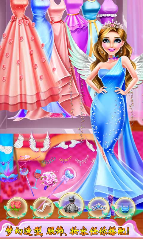 2、多种打扮方式来改变女孩的外貌,那些完美的礼服都是可以来为心爱的公主完成穿戴。