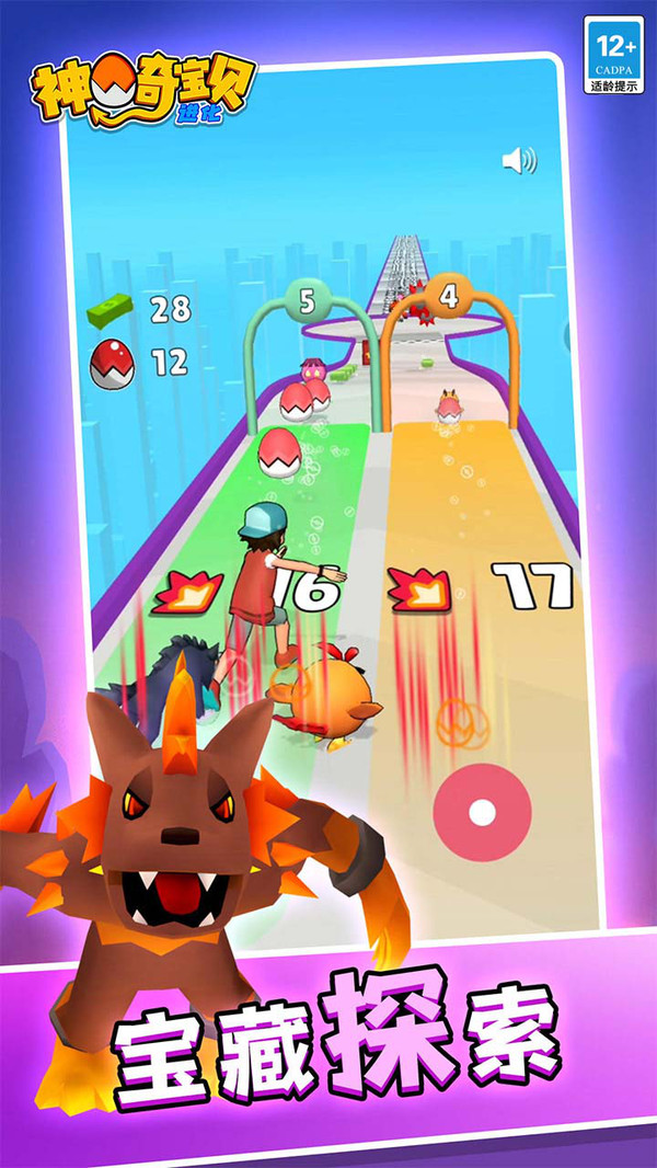 2、这里玩家作为训练师加入跑酷队伍,搜集沿途的神奇宝贝;