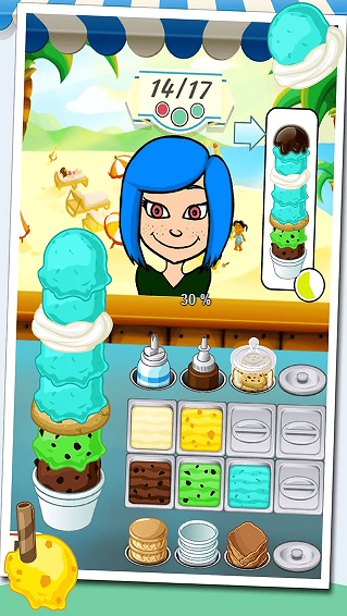 1、招募更多的员工,一起变身成为小店长,卖雪糕赚金币,购买更多材料。