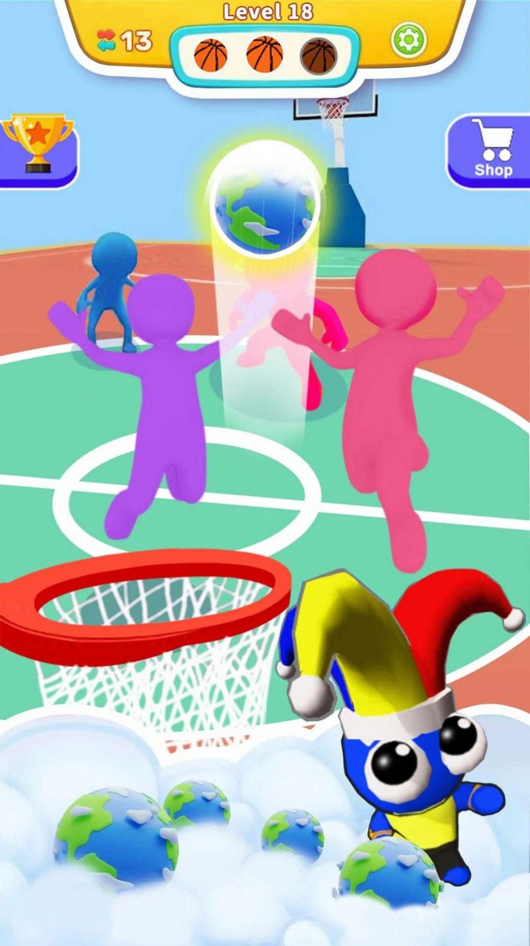 2、丰富多彩的篮球场地和动漫人物等你来体验,你可以和高手任意的切磋球技。