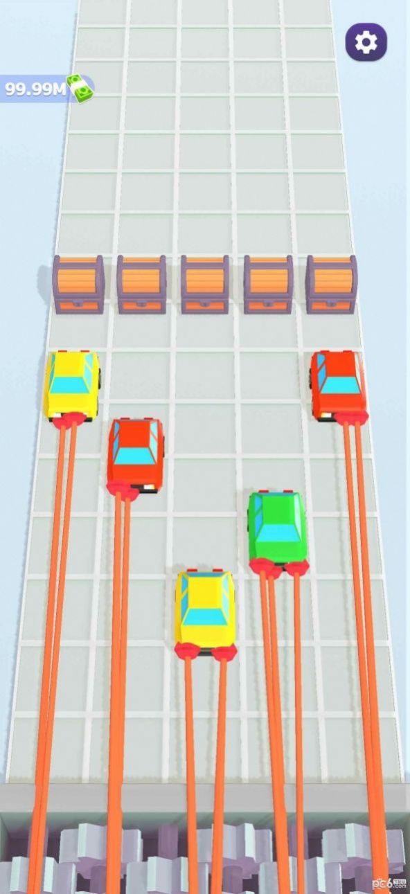 2、用挂钩钩住汽车后将汽车拖到中间的搅拌机中,就能获得金币奖励。