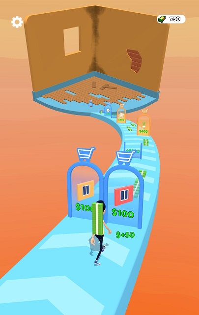 1、不断向前跑,通过不同的数量门来提高自己的金钱数量。