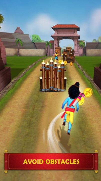 是一款魔幻风格的跑酷游戏,有数百万玩家已经下载体验了,游戏主角的形象设计是印度古代的设计,跑酷画面内容也是色彩比较鲜艳,玩法就是神庙逃亡这样的跑酷游戏是一样的,操控你的角色一直前进,在途中需要跳跃躲避等等。
