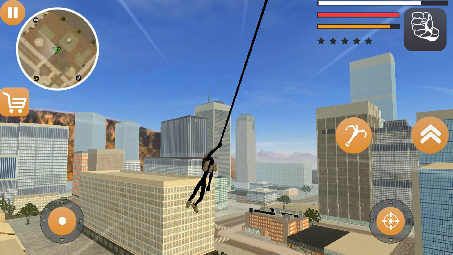 3、玩家将操作火柴人进行紧密的射击的战斗,跳跃各大高楼大厦之间。