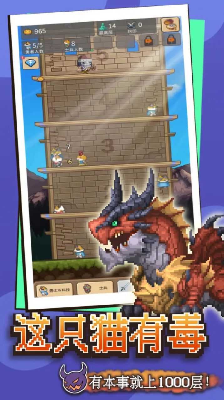 1、经典的像素画风,丰富的养成玩法,无尽的爬塔竞技,面对更多的考验;