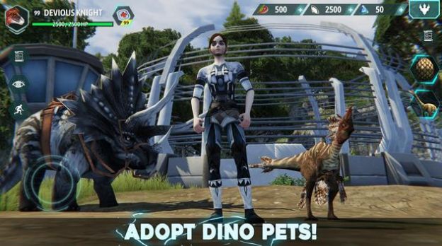 2、在这个虚拟游戏世界里可以不断的俘虏恐龙进行战斗,你有很多的敌人。