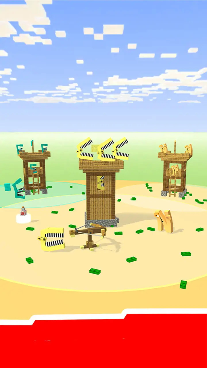 这是一款带有魔性与竞技元素的游戏。在游戏中,你将带领你的彩虹怪物军队在竞技场中与其他玩家争夺砖块,并使用砖块来坚固你的城堡。