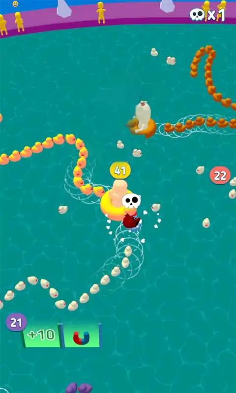 全新的贪吃蛇游戏来啦!这一次,你是泳池中小黄鸭的领头“鸭”,你将带领你的小黄鸭们撞击其他的对手,把他们的小黄鸭全部吞并。泳池中还有很多的道具可以使用,努力吞掉所有小黄鸭,成为泳池霸主!