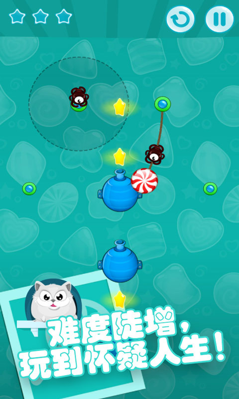 是一款非常不错的割绳子小游戏,在游戏中你需要按照关卡的要求将绳子割开,玩起来十分不错。游戏中包含了大量的关卡,每一关都有着全新的玩法,保证你能随时体验到新鲜和趣味。