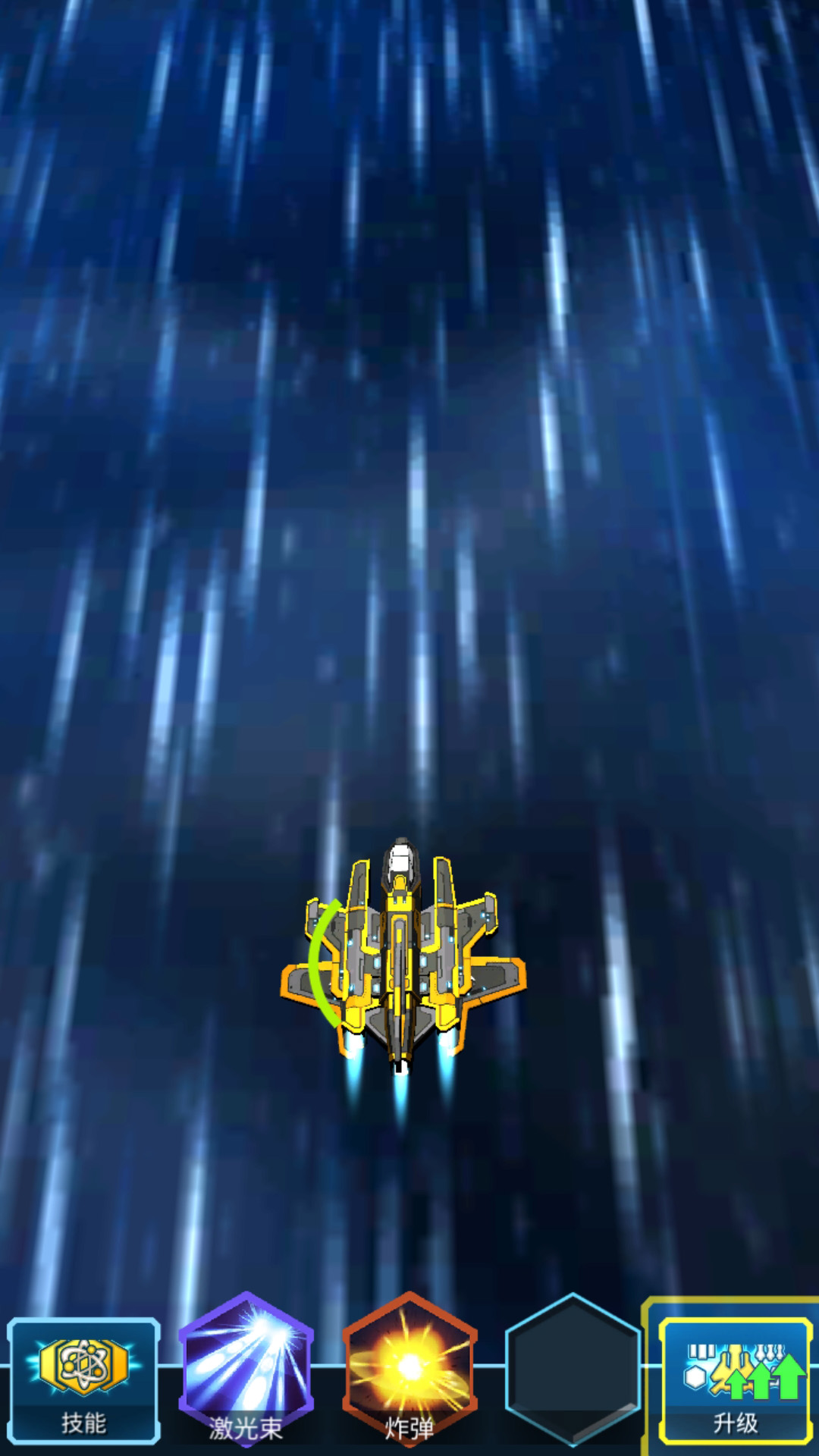 3、点击屏幕即可发射导弹击打你的目标,收集暗能量,解锁强力的部件,升级你的战机。