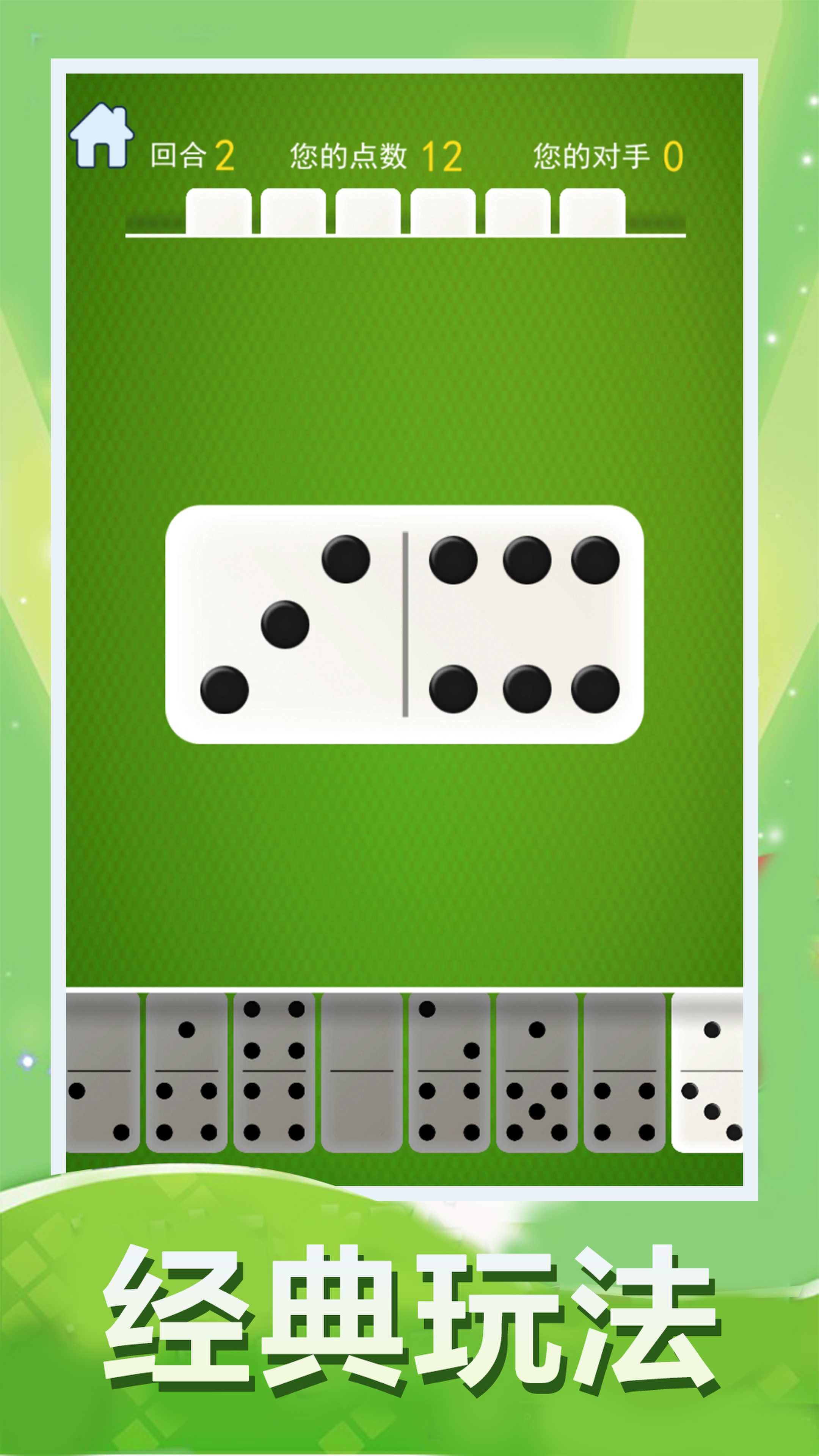 这是一款经典的骨牌接龙游戏,该游戏的规则很简单,玩家双方各有若干骨牌,对垒双方依次出牌“接龙”,