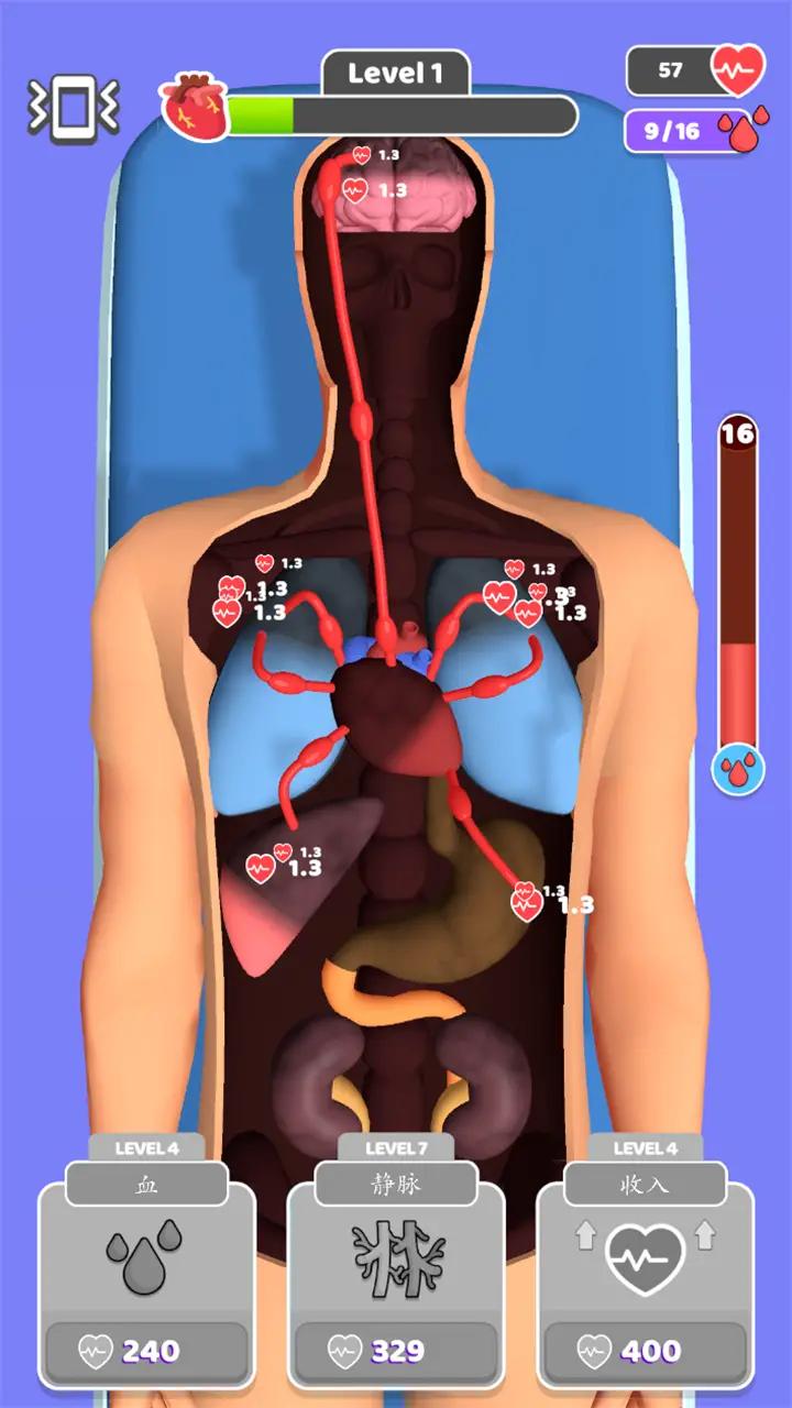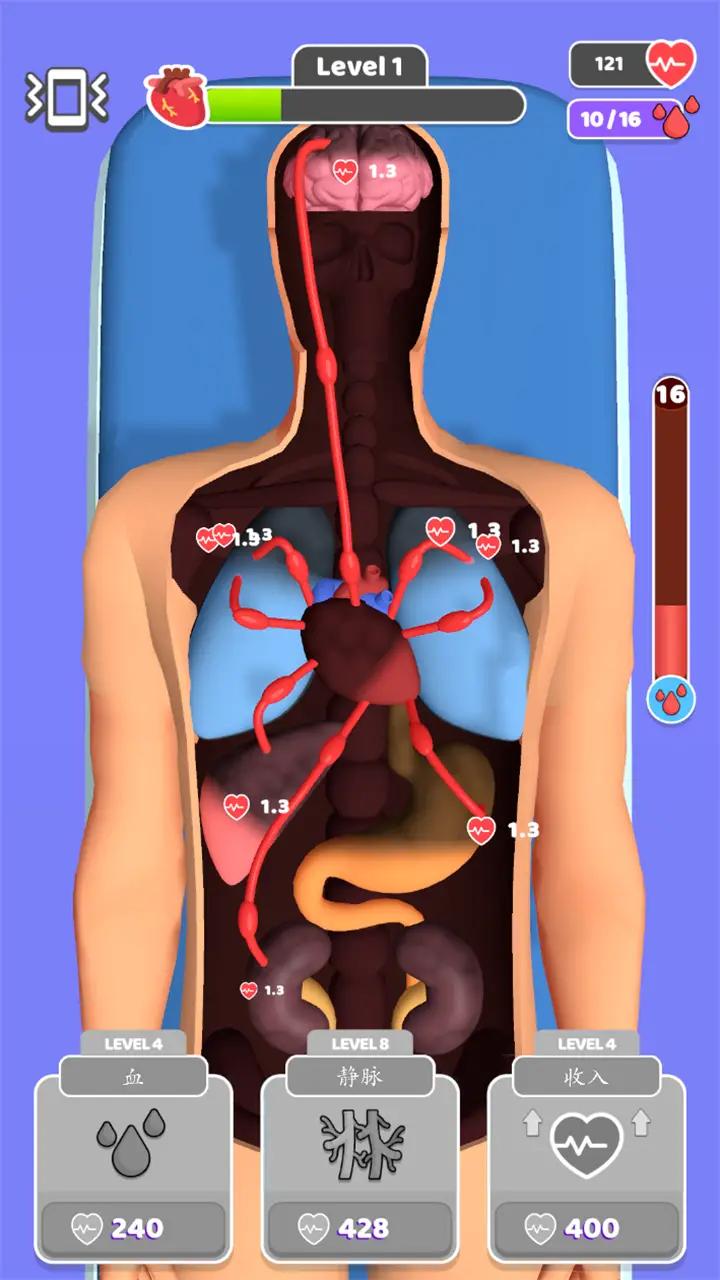 2、主题是急救过程的模拟,玩家需要通过引导和突破障碍,将所有的血液输送到全身器官;