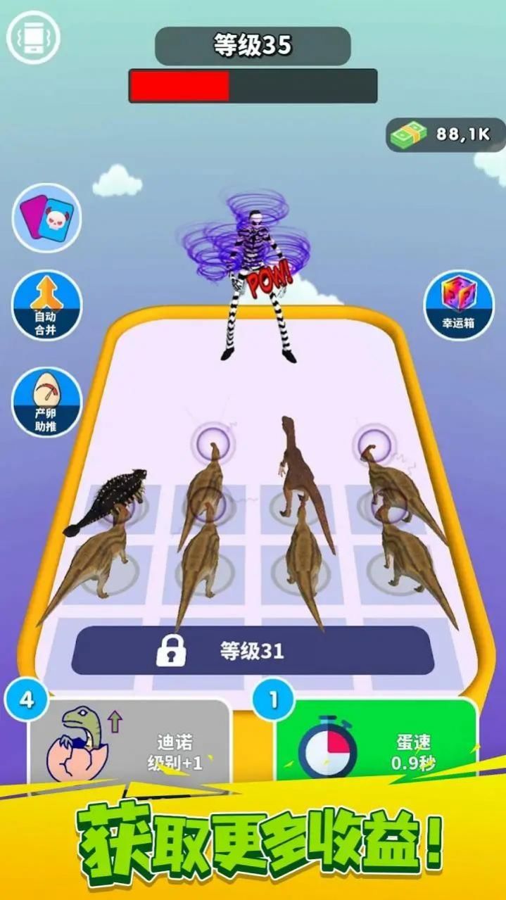 3、放置式玩法,无需过多操作,即可享受恐龙园的成长和收益。