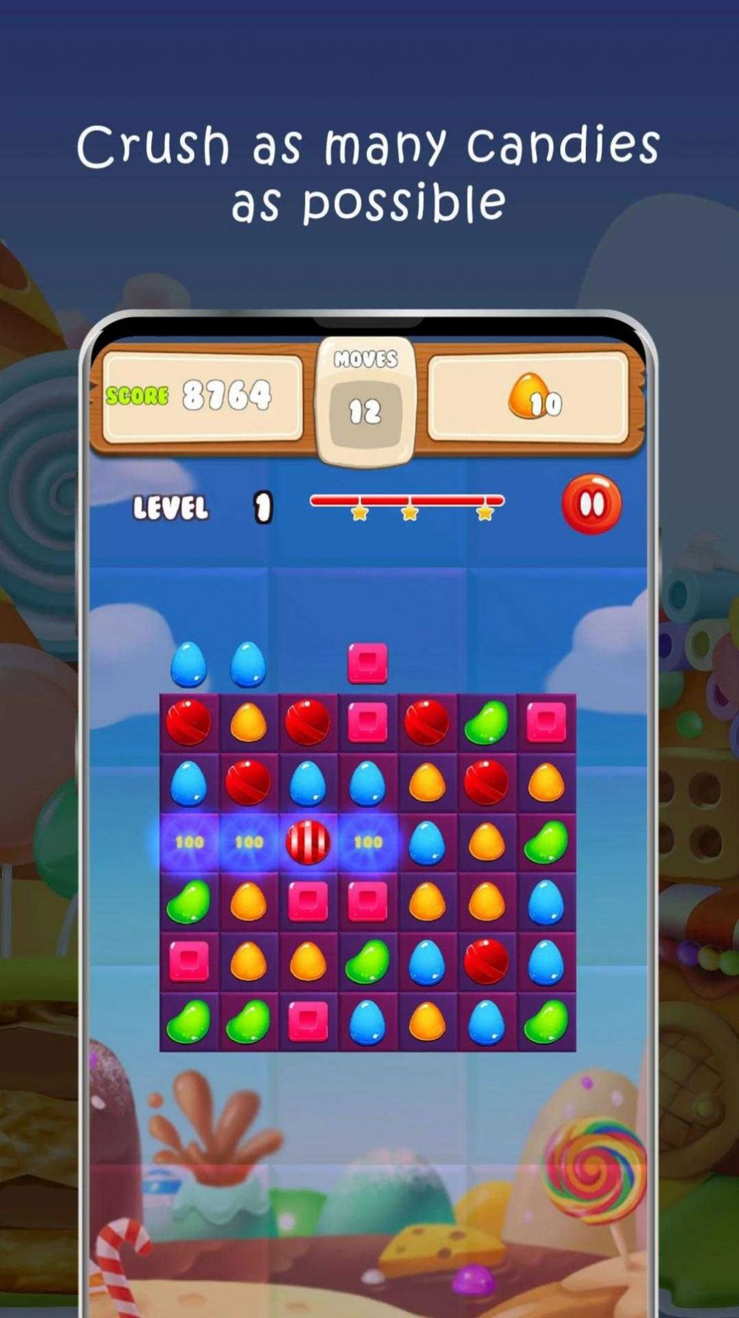 2、游戏画面绚丽多彩,糖果造型可爱诱人,音效清脆甜美;