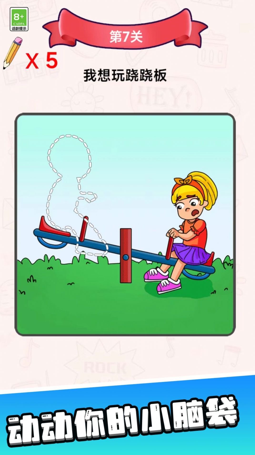 1、根据每个关卡给出的提示或目标,来为相应的场景或角色画出合适的线条;