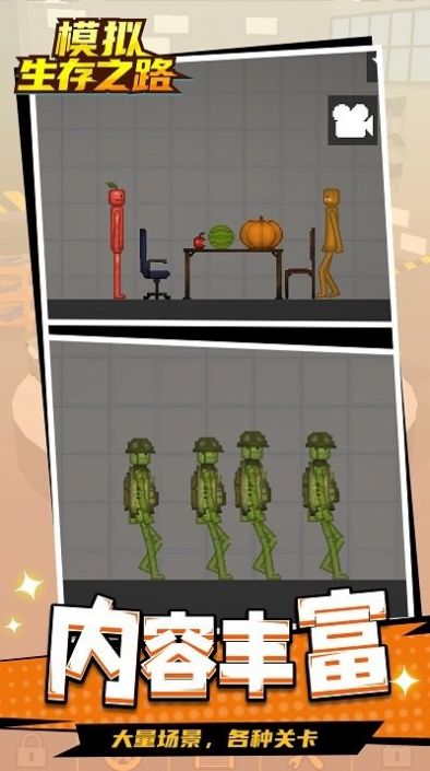 模拟生存之路是一款生存类游戏,玩家需要在一个充满危险和挑战的世界中寻找资源和武器,建立自己的营地,并与其他玩家或NPC进行互动或战斗。游戏的玩法非常自由和开放,玩家可以在不同的地图和场景中探索和冒险,收集各种物品,包括食物、水、药品、武器等,并对其进行升级改造。