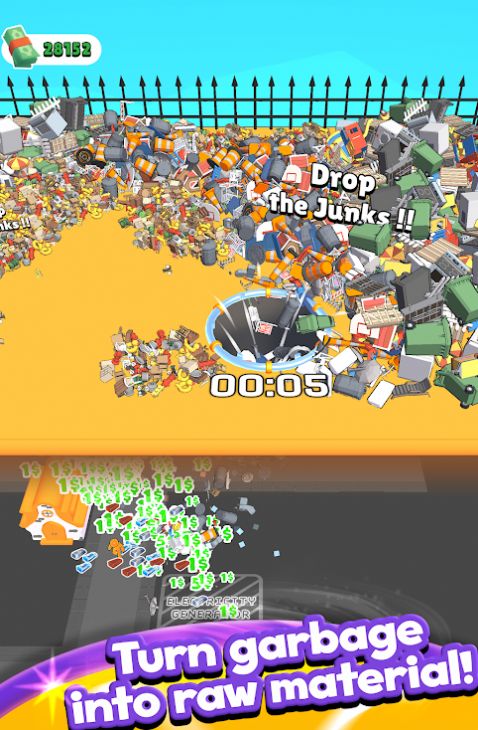 2、你需要掌控一个体型庞大的垃圾黑洞,通过不断吞噬各种垃圾来壮大自己。