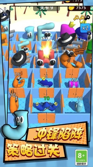 战斗行动字母战争游戏是一款需要讲究策略的对战冒险游戏,你需要率领自己的字母人部队,与其他玩家展开战斗,掌握全局,游戏中的每个角色都有不同的属性和技能,玩家需要合理地搭配自己的部队并制定战术,才能取得胜利,玩家之间可以互相交流、组队作战、分享游戏心得等,增加了游戏的趣味性和互动性。