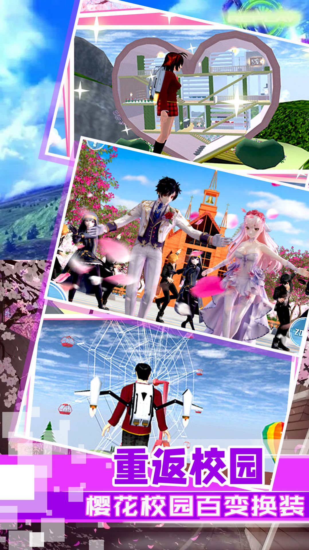 1、精美樱花园林场景,打造校园恋爱氛围。