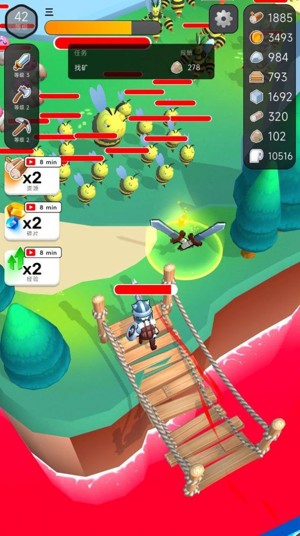 2、可以自由探索和收集各种资源,制作各种工具和武器;