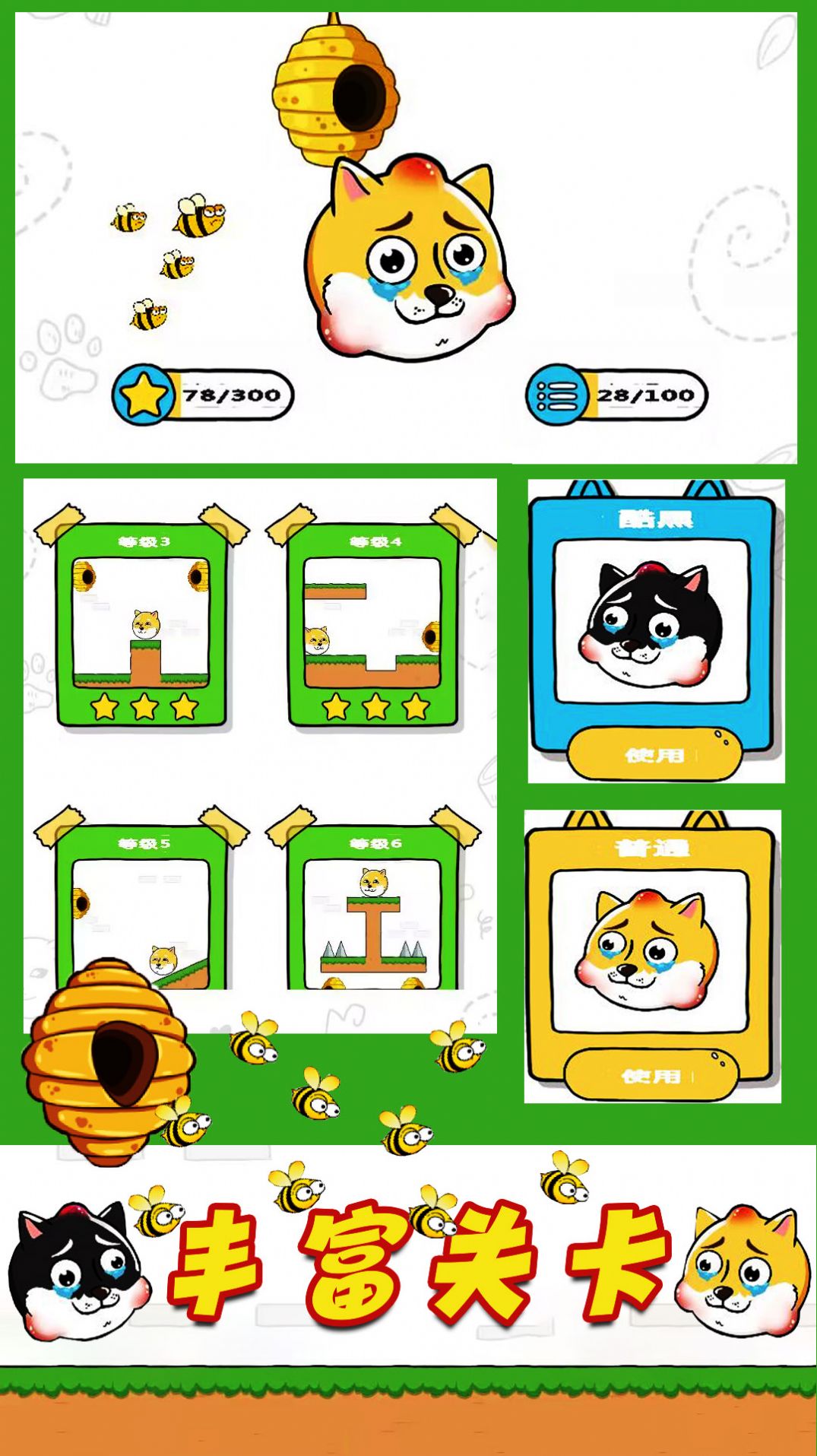 蜜蜂狗的冒险游戏是一款趣味闯关类游戏,玩家需要控制蜜蜂狗进行各种跳跃、攀爬和躲避危险。游戏中有许多独特的关卡设计和令人惊叹的画面效果,让玩家在游戏中体验到真正的冒险乐趣。此外,游戏还提供了多种装备可以使用,增强了游戏的可玩性和挑战性。