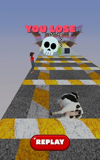 3、利用奶牛的跳跃和滑翔,调节好距离和速度,并随时调整跑道位置,保证奶牛不会掉下赛道。