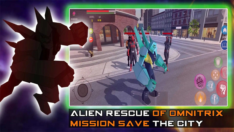 终极英雄外星人游戏是一款有着丰富英雄对战模式的冒险游戏,讲述了一个外星人入侵地球的故事,玩家需要扮演一个英雄角色,穿越各种险恶的环境,与外星人展开生死决战从沙漠到冰川,从深海到古城,每个场景都会带给玩家不同的挑战和体验,需要通过各种手段来打败外星人,包括攻击、防御和使用各种装备和道具。