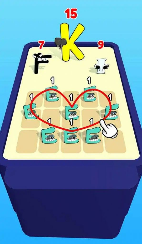 1、观察字母怪物的形状和颜色,合并出更加凶猛的怪物。