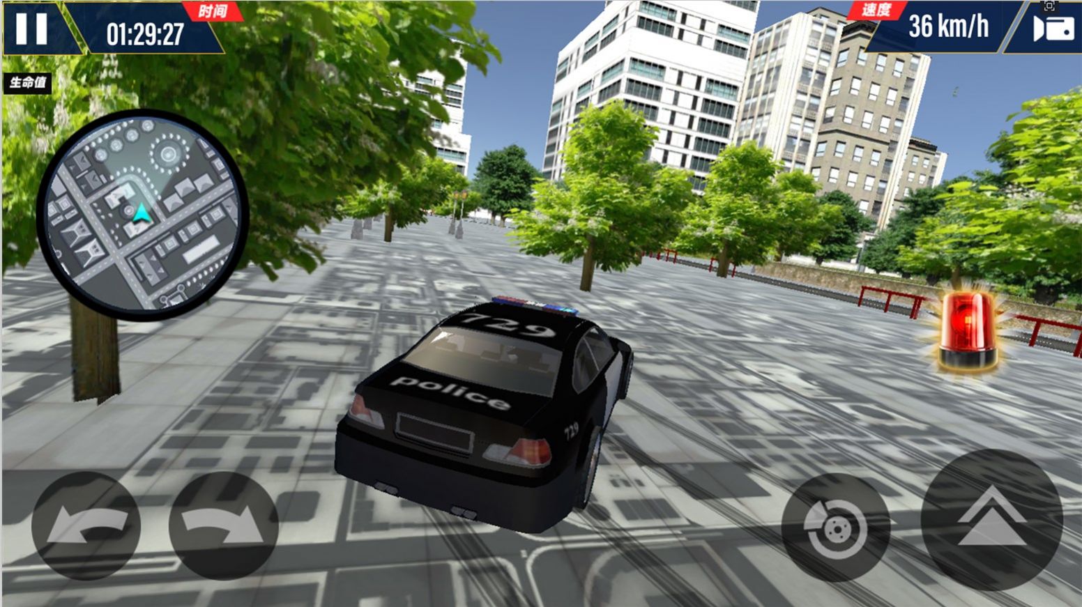 2、玩家可以自由驾驶警车,但需要注意遵守交通规则,否则会被扣分。
