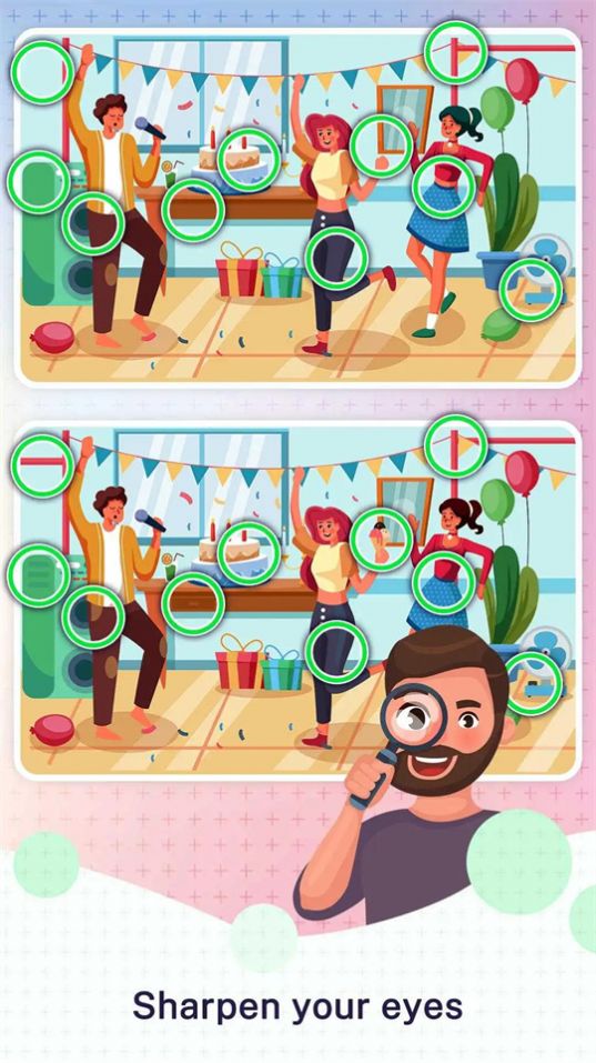 1、设计独特,通过找出图中的差异来完成游戏目标。