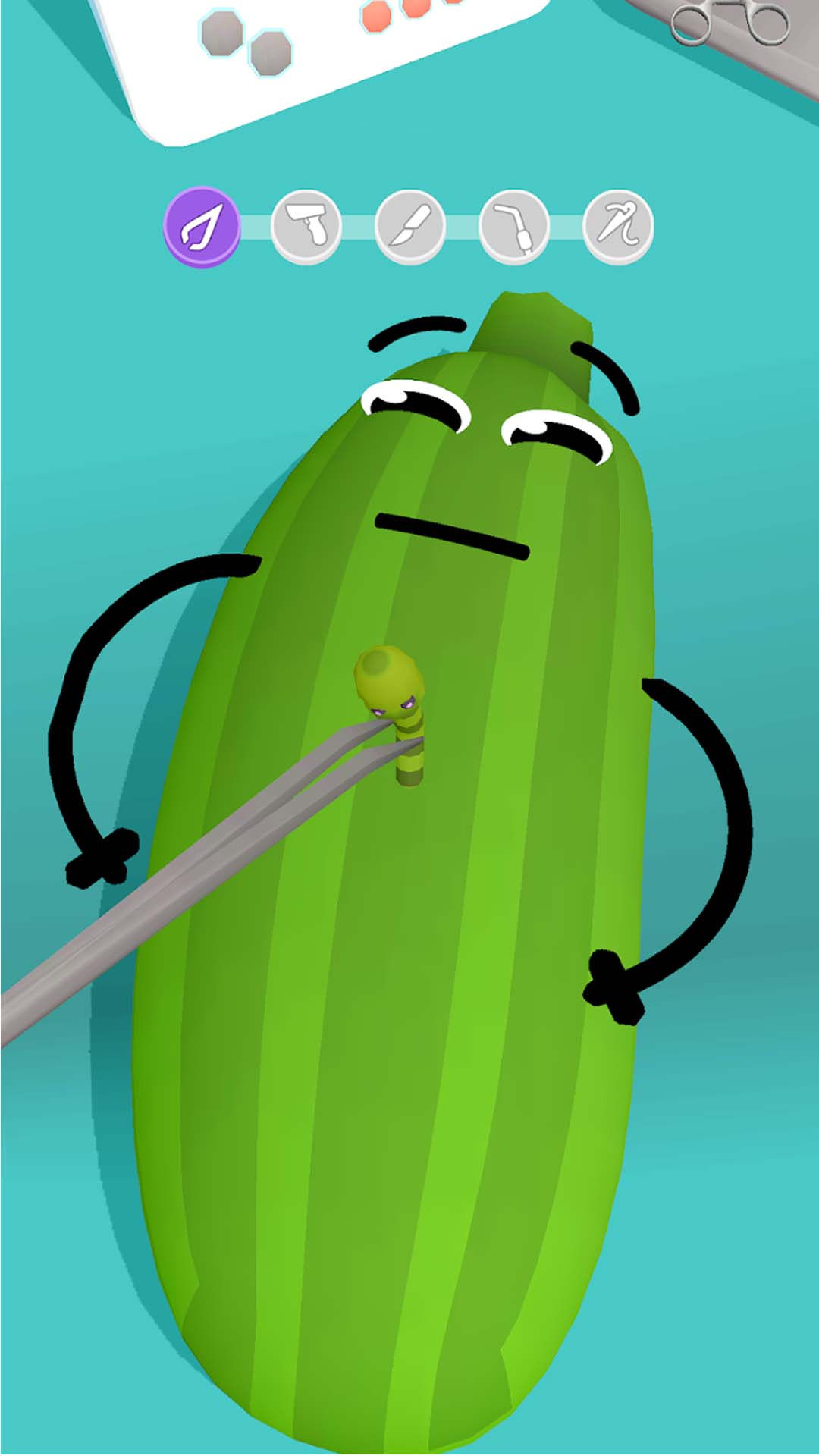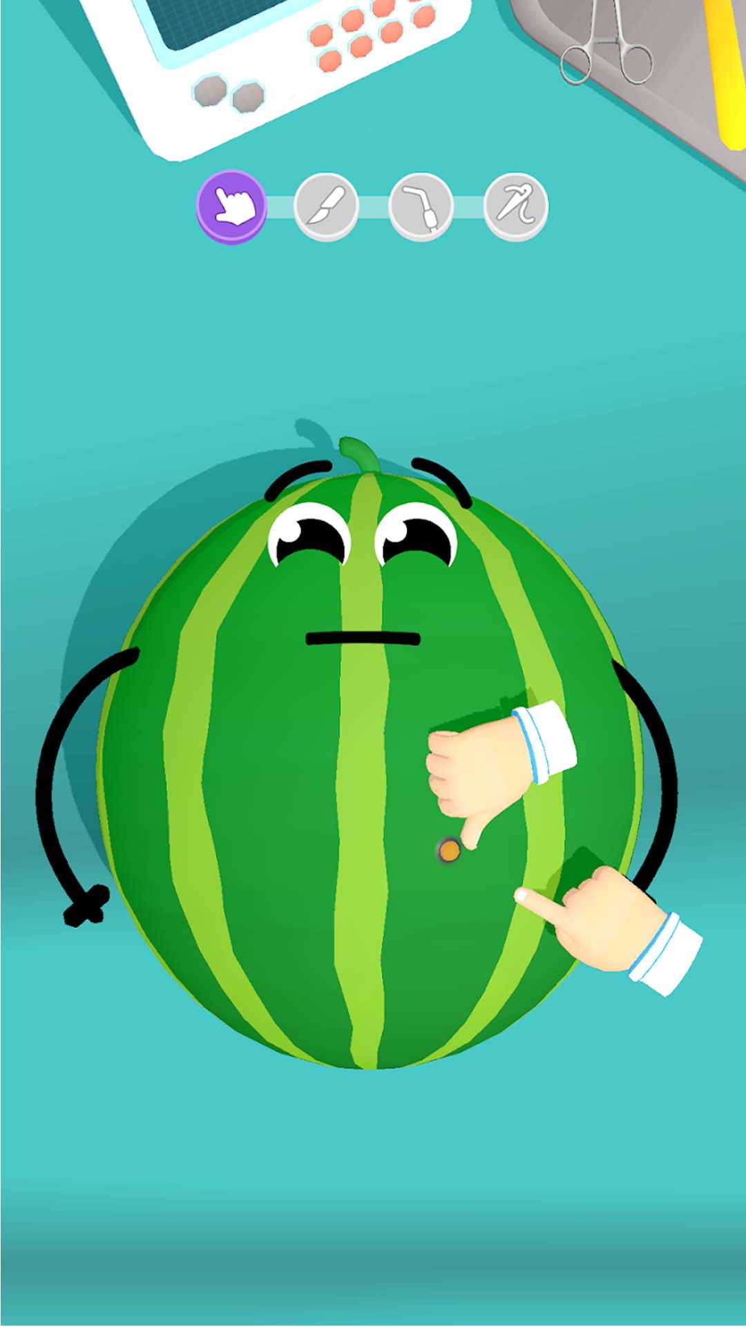 1、你需要通过拖拽、点按和滑动等动作,使用不同的工具为各种水果进行美容。