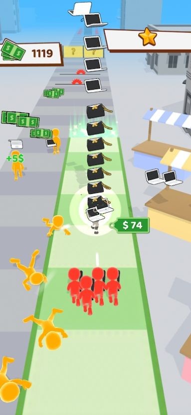 2、在冲刺的道路上抢夺更多的金币,升级你的角色,获得更加强大的能力。