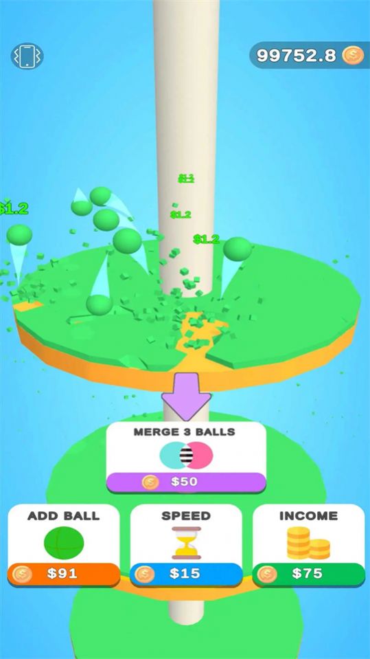 空闲球挖掘是一款向下粉碎目标的跑酷游戏,控制一个小球沿着塔式结构向下滑行,在不断前进的过程中不断躲避各种障碍物,还需要利用技能粉碎目标,收集金币,这样可以解锁新的球以及更多的奖励,同时玩家还可以通过购买技能来改变游戏策略,例如可以通过购买暴击技能等更加轻松地粉碎目标。
