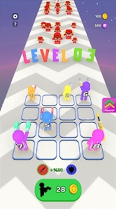 火柴人军团合成射击者游戏是一款刺激的闯关游戏,在这个游戏中,您将扮演一名火柴人战士,在一系列的关卡中合成各种形态的火柴人来对抗敌人并闯过关卡。玩家可以从最初的简单的火柴人开始,通过合成、提升和装备升级等方式不断增强自己的战斗能力。