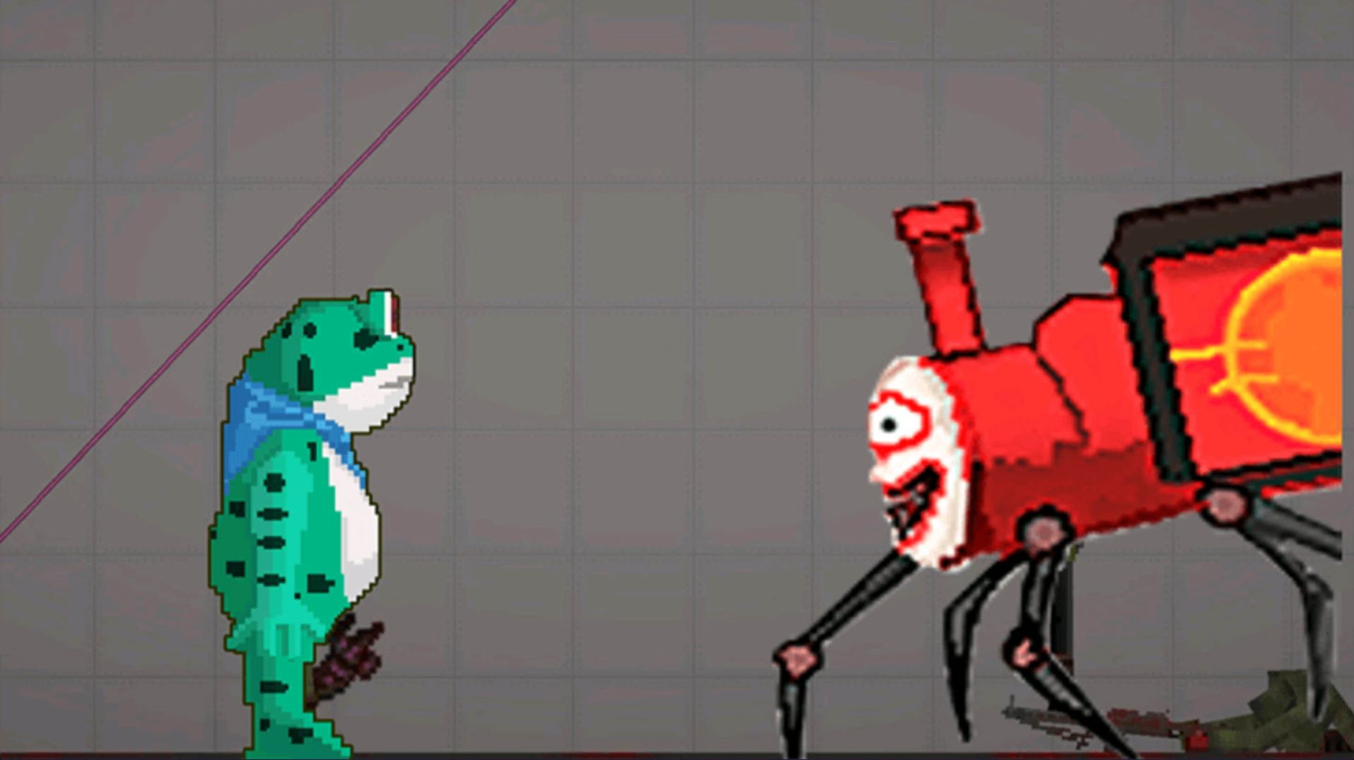布娃娃甜瓜战斗游戏是一款在沙盒世界来对抗怪物蜘蛛火车的游戏,你必须用你的智慧和勇气,探索世界,收集各种有用的物品和武器,升级你的技能和能力,打破各种挑战,你可以挑战各种Boss蜘蛛,更可以挑战别的玩家或是与好友一起玩,体验刺激的协作与对战玩法。