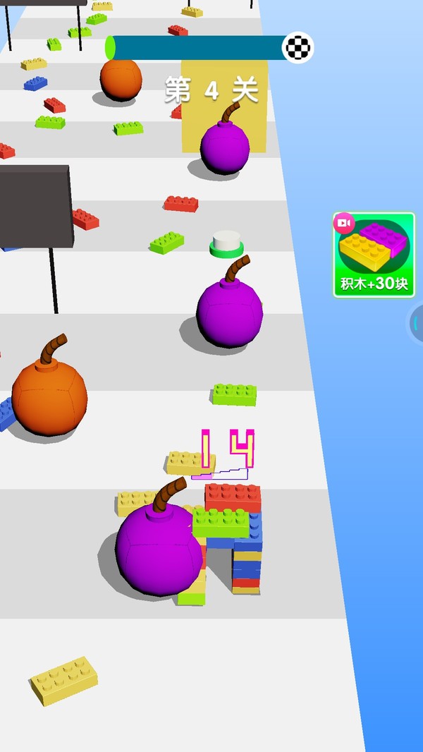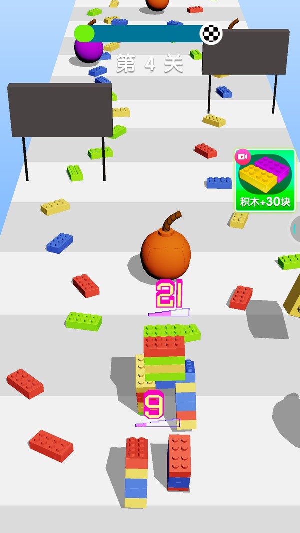2、打法很有特点。在奔跑中,收集各种积木并继续前进。