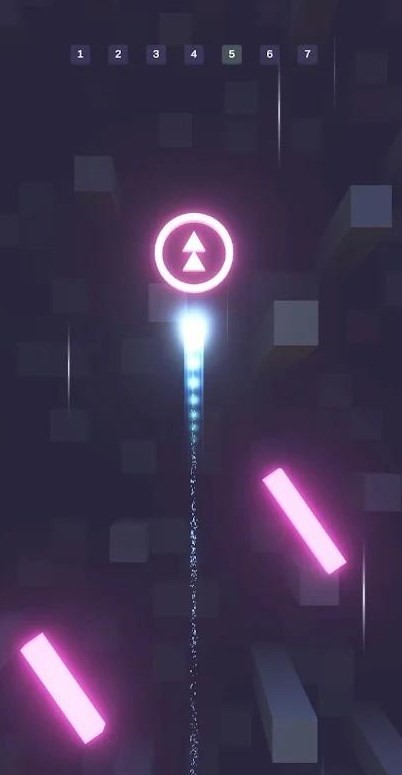 1、点击屏幕让小球发射,这里不止有拦截小球的陷阱,还有一些能让小球转弯的粉色发光材质。