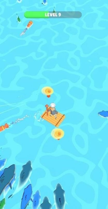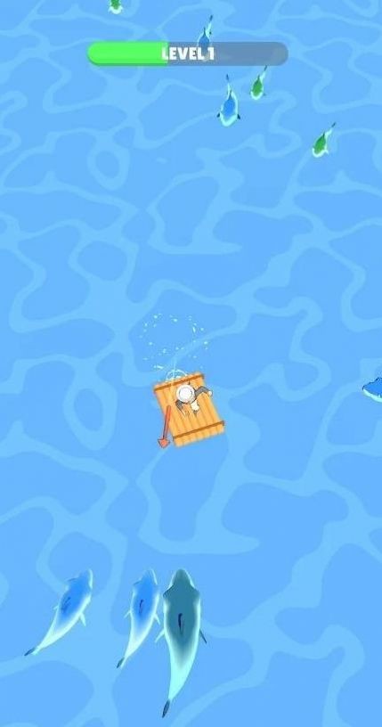 1、随意滑动屏幕控制木筏子移动,当鲨鱼进入射程内会自动射击。