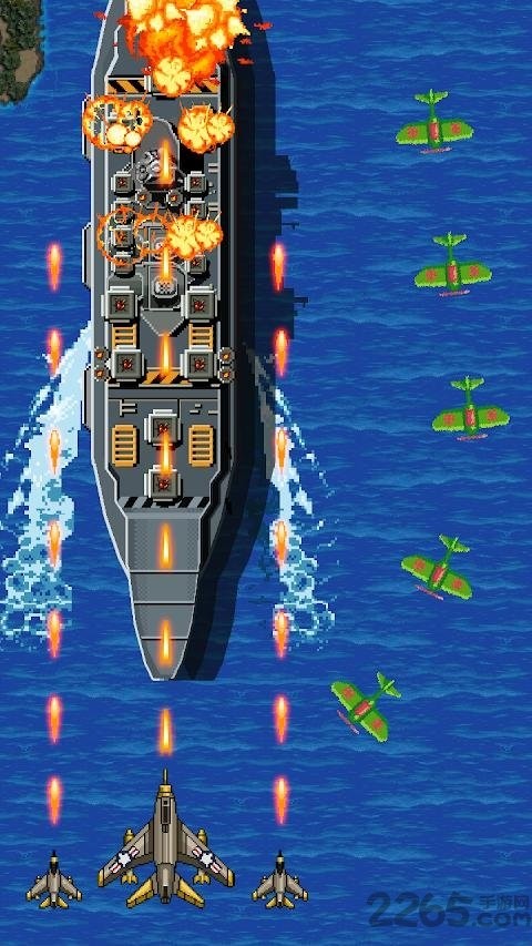 3、升级与强化:玩家可以通过战斗获得金币,用于升级战机的武器、攻击力和防御力;