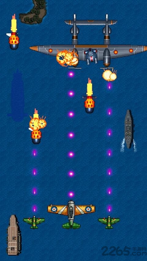 1、经典的弹幕射击玩法,玩家可以享受怀旧的飞行射击乐趣,同时体验高难度的战斗挑战;