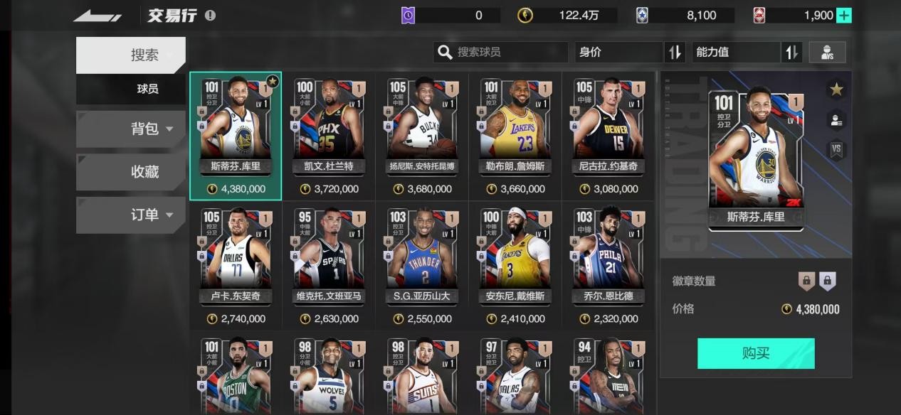 ②交易市场可以在搜索栏查看当前上架的球员(球员是实时更新的,可以把需要的球员收藏方便实时关注),或背包中选择自己所需的球员,调所需数量点击购买即可完成交易。