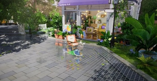 4、在探索之外,你也可以在自己的花园中休憩放松,换装、生产、建设城市,和队友们一起享受慢节奏生活。