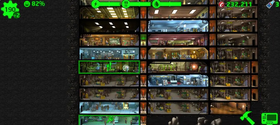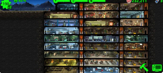 游戏中盖楼的前提必须有瓶盖。只有收集更多的瓶盖,才能建造更多的建筑。充足的食物、水和电能给避难所里的居民带来满足感。感兴趣的朋友不要错过下载。