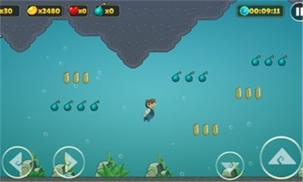 1、游戏采用经典的横版平台跳跃玩法,玩家需要通过触摸或点击屏幕来控制佩佩跳跃、攻击和躲避障碍;