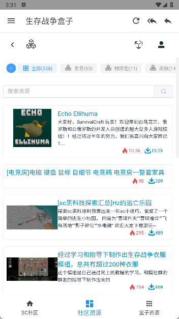 这是专门为喜欢玩生存战争的玩家设计的社区资源论坛软件,也叫sc盒子网。玩家可以找到与生存战相关的各种资源,如游戏、地图、模块、材料、皮肤和家具包等。这些资源都可以免费下载,让大家更好的体验游戏。同时,软件还提供了详细的资源教程,帮助每个玩家了解如何安装模块地图等资源,即使是小白玩家也能轻松掌握。
